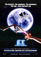 A young boy (Henry Thomas) discovers an extraterrestrial being who's been left behind when his spacecraft had to ascend in a hurry. The two become great friends while government agents are trying to catch E.T. But the boy's older brother (Robert MacNaughton), younger sister (Drew Barrymore) and friends come to E.T.'s rescue. Also with Dee Wallace-Stone, Peter Coyote and C. Thomas Howell. [1:45/2:00]