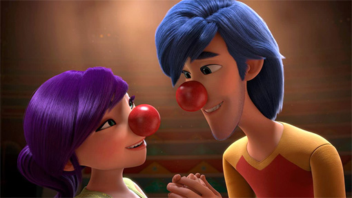 – A man and a woman kiss briefly in three scenes. A woman kisses an unwilling man for several seconds in two scenes. A man proposes to a woman with a clown’s red nose in a circus ring after saying, “I love you” and the woman accepts.