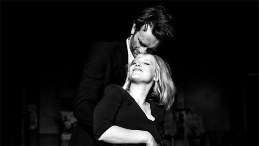 - A man and a woman argue bitterly and the man hits the woman hard in the face after she tells him that she had sex with another man. Two men lead a man away from a theater and escort him onto a train sending him out of the country. A man falls off a ladder and dangles from a large banner. A woman stumbles and falls off a stage (she seems drunk). After a fight with a man a young woman jumps off a hill and into a river and floats away singing. A man barges into another man's apartment and searches for a woman who is not there.