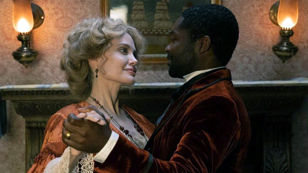► Women wear dresses that reveal cleavage in several scenes. A mermaid figurehead on the front of a ship is shown topless with bare breasts and abdomen shown from the side.