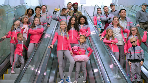 ► Two young girls freeze during a dance competition and are motionless onstage until a young boy comes onstage and starts dancing with them. Several teens and pre-teens play in the park during a rainstorm and jump in mud puddles, splattering mud on themselves and each other. Football players trip over tires during a drill in practice.