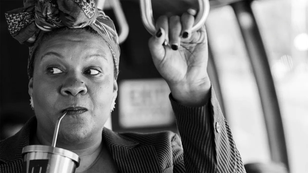► A woman performs a rhyme in a theater and insults members of the audience after a play. A man yells at a woman on a sidewalk and tells her to be quiet. A woman is frustrated when her lines in a play are written in a racist vernacular. A woman talks about “Black poverty porn” in several scenes. Several women compete with rhymes in front of a crowd. A woman cries and calls for her mother when she feels lost and sad.