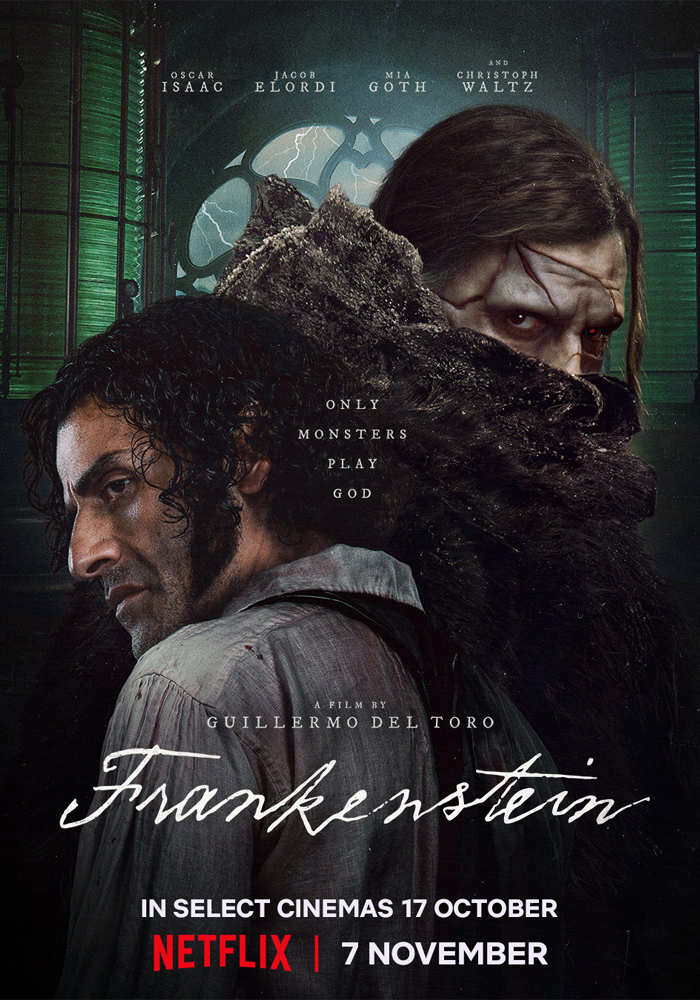 In this interpretation of the classic, the brilliant scientist Dr. Victor Frankenstein (Oscar Isaac) creates a new creature from body parts, and is horrified when he realizes that what he considers a tragic monster (Jacob Elordi) may be invulnerable, powerful and capable of both personal agency and deep desires. Also with Christoph Waltz, Mia Goth, Felix Kammerer, Charles Dance, David Bradley, Lars Mikkelsen and Christian Convery. Directed by Guillermo del Toro. [Running Time: 2:29]