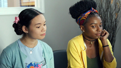 ► A teen girl storms through a room as a woman tries to speak to her and she doesn’t respond. A man reprimands his teen daughter for embarrassing her teacher. A man reprimands his teen daughter for speaking to her stepmother in a disrespectful manner. People argue in several scenes and raise their voices. A teen girl talks about a young man in a derogatory manner and says, “You can take the brother out of the hood…” A teen girl sticks her tongue out at another teen girl.