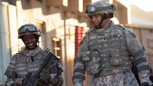 – A husband and his wife kiss, hug and hold hands in a few scenes. Several soldiers and their significant others kiss and hug when they are deployed to Iraq.