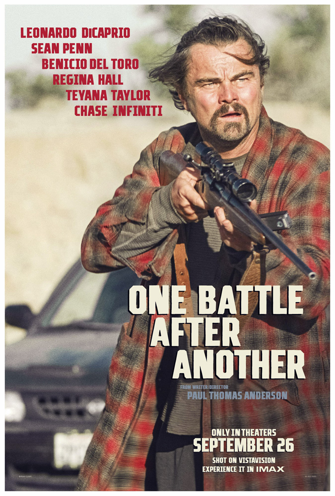 In an alternate US history, a revolutionary group identifying itself as the French 75 wreaks havoc, protesting a government’s fascistic methods, by attacking politicians, banks, and the power grid. One member (Leonardo DiCaprio) flees with his infant daughter hoping to live a normal life, but sixteen years later he is tracked down by a high ranking officer and white supremacist (Sean Penn), who’s determined to destroy him. Also with Benicio Del Toro, Regina Hall, Teyana Taylor, Wood Harris, Alana Haim, Shayna McHayle and Paul Grimstad. Directed by Paul Thomas Anderson. Several lines of dialogue are spoken in Spanish without translation. [Running Time: 2:41]