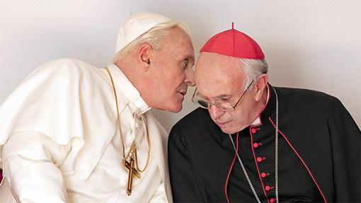 In 2012, Pope Benedict (Anthony Hopkins) summons Cardinal Bergoglio (Jonathan Pryce), a prominent critic of his conservative stewardship and the scandals of the Catholic Church to try to find a compromise between tradition and progress. When Pope Benedict renounces his papacy, a new pope must be elected and Cardinal Bergoglio becomes Pope Francis. Also with Juan Minujín and Sidney Cole. Directed by Fernando Meirelles. Several lines of dialogue are spoken in Latin without translation and others are spoken in Spanish, German, French, Portuguese and Italian with English subtitles. [Running Time: 2:05]