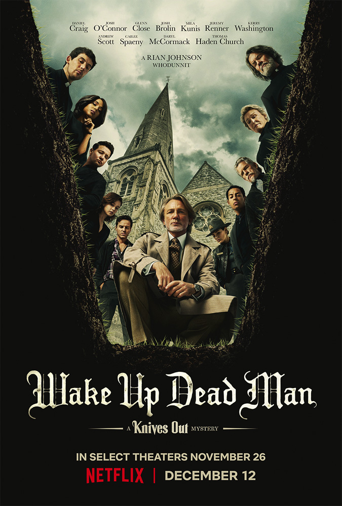 In the third installment of the Netflix whodunit series featuring detective Benoit Blanc (Daniel Craig) a controversial Catholic priest (Josh Brolin) is murdered in a manner inspired by classic “locked door mysteries,” and the prime suspect is a young priest (Josh O’Connor), who seemingly could not have done it. Also with Glenn Close, Mila Kunis, Jeremy Renner, Kerry Washington, Andrew Scott, Cailee Spaeny, Daryl McCormack, Thomas Haden Church, Jeffrey Wright and Annie Hamilton. Directed by Rian Johnson. [Running Time: 2:24]