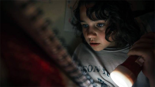 ► We see a missing child poster with a picture of a young boy. A boy says he wants to be a pirate. A girl reads an adventure story and one line has a character telling another character to throw, “intestines into the grinder.” A boy talks about his mother having hitchhiked across country and stealing a car when she was young. A girl talks about a haunted train. A girl talks about a boy and says, “His heart cracked right down the middle and all the joy spilled out of it,” when his twin brother disappeared. A man tells a girl that the dirt she is walking on has dead people in it. A girl yells, “You can’t lose hope, that’s what makes you old.”